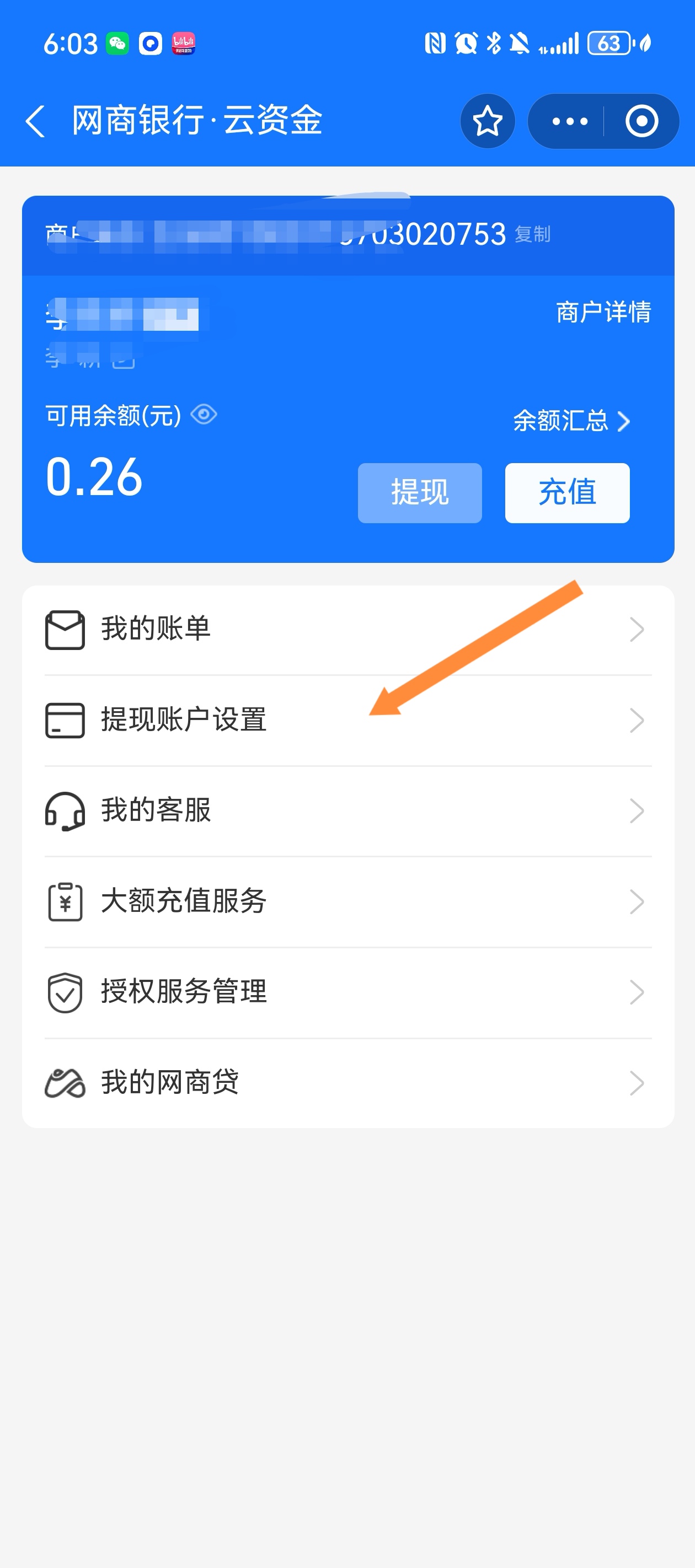 如图点击提现账户设置即可更换同名银行卡进行提现。