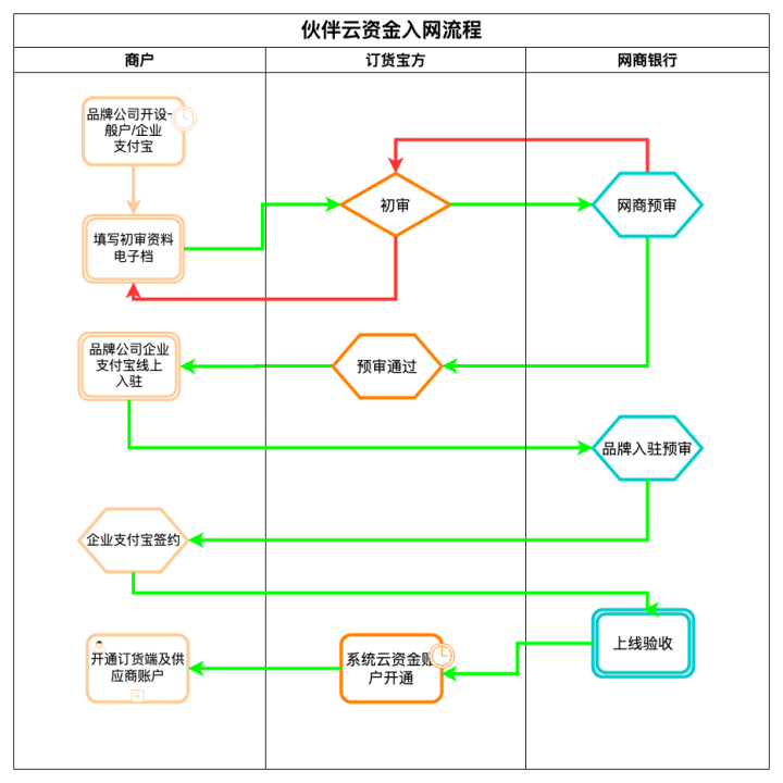 6.上线验收完成后,网商反馈秘钥后完成上线开户(品牌公司账户/供应链公司开户);