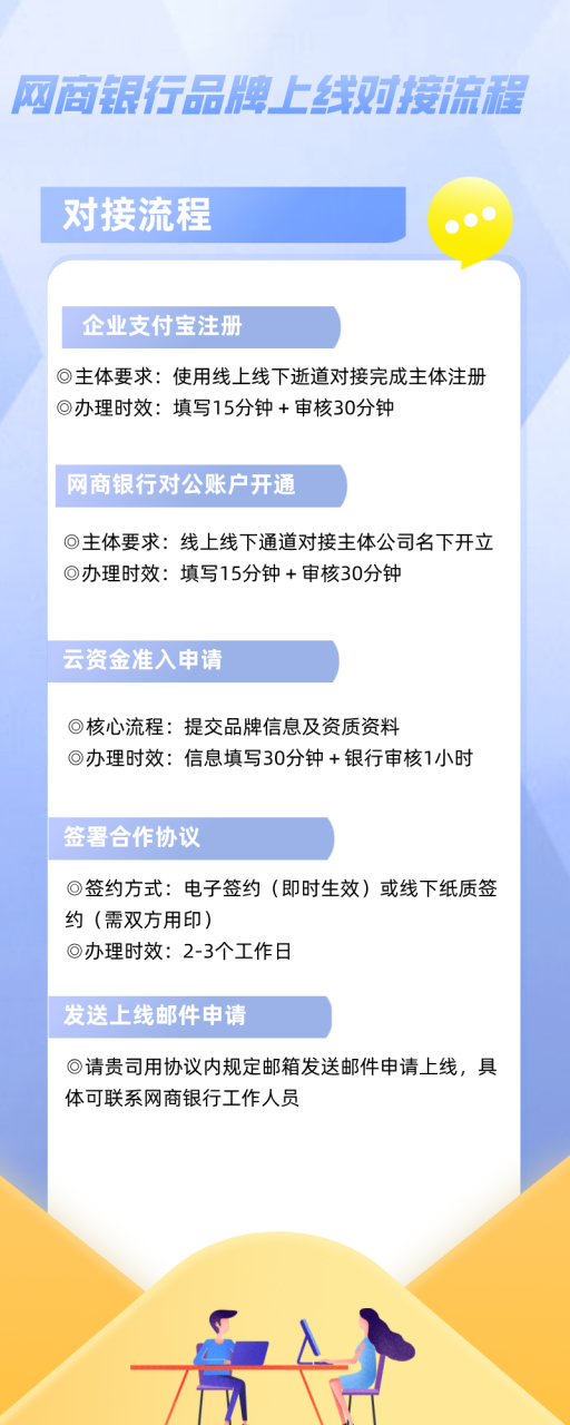 1.商户(品牌管理公司)通过企业支付宝开通网商银行一般账户;