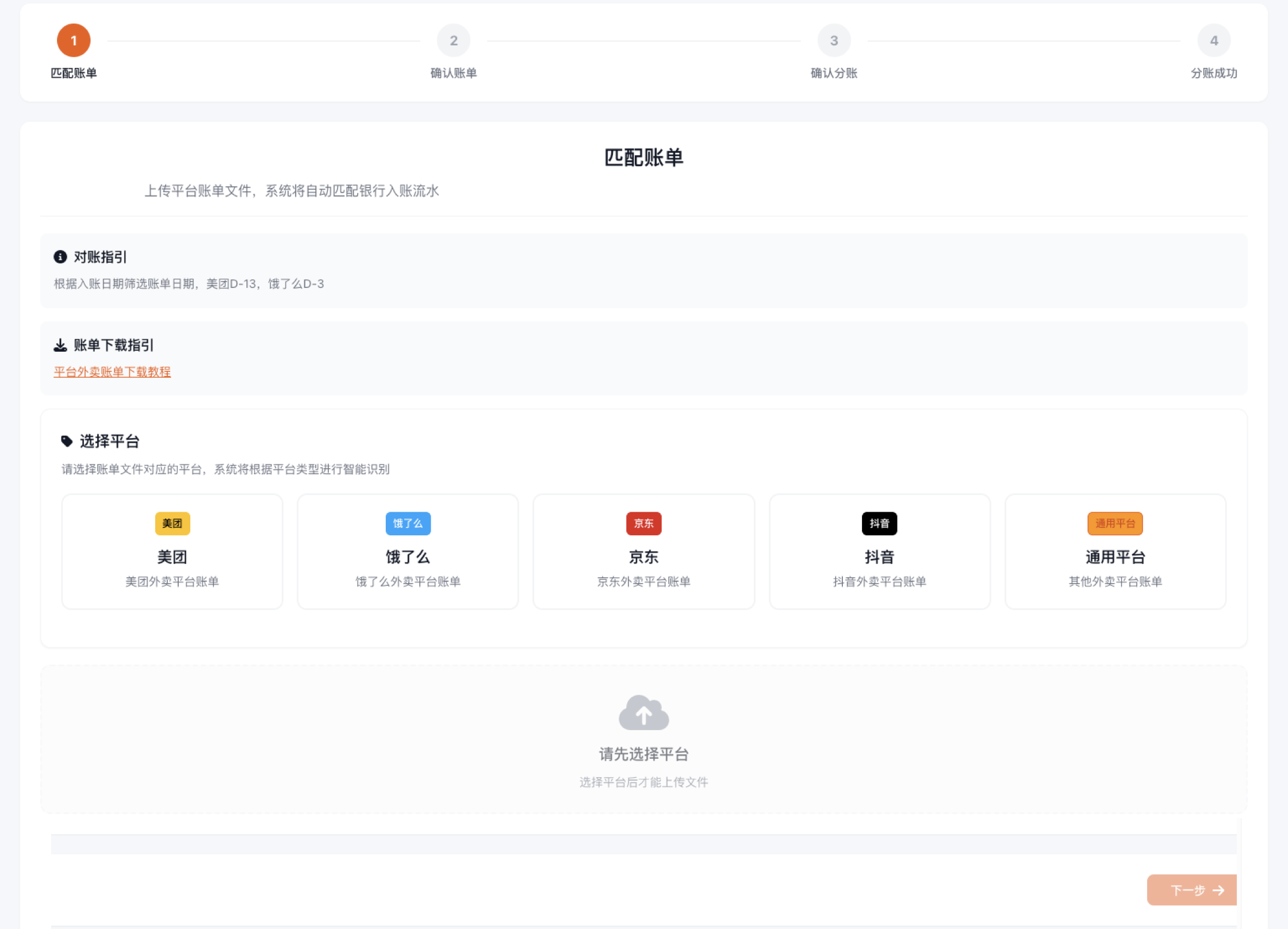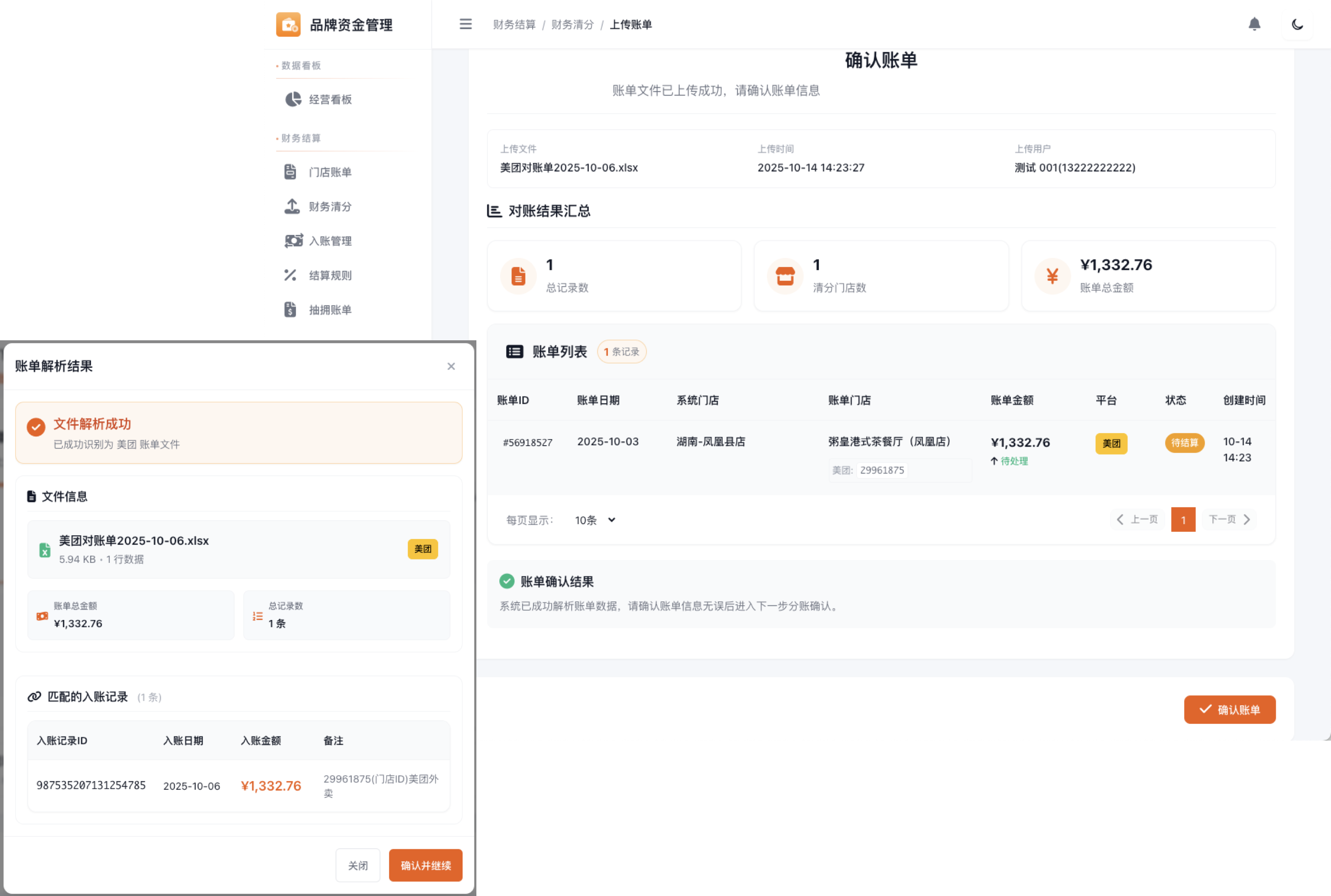 财务清分 — 上传账单流程